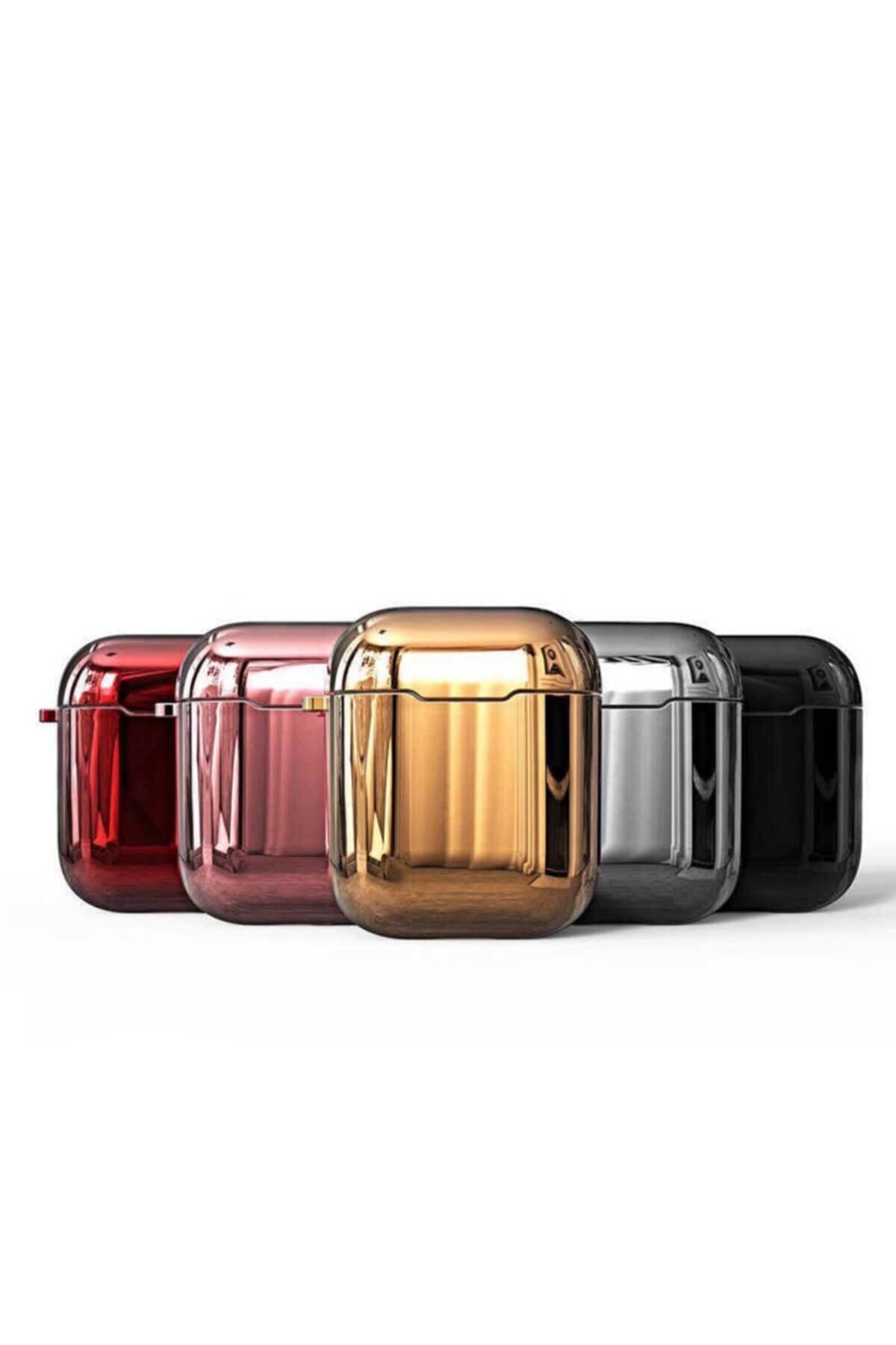 Apple Airpods Parlak Tasarımlı Silikon Kılıf - Gold