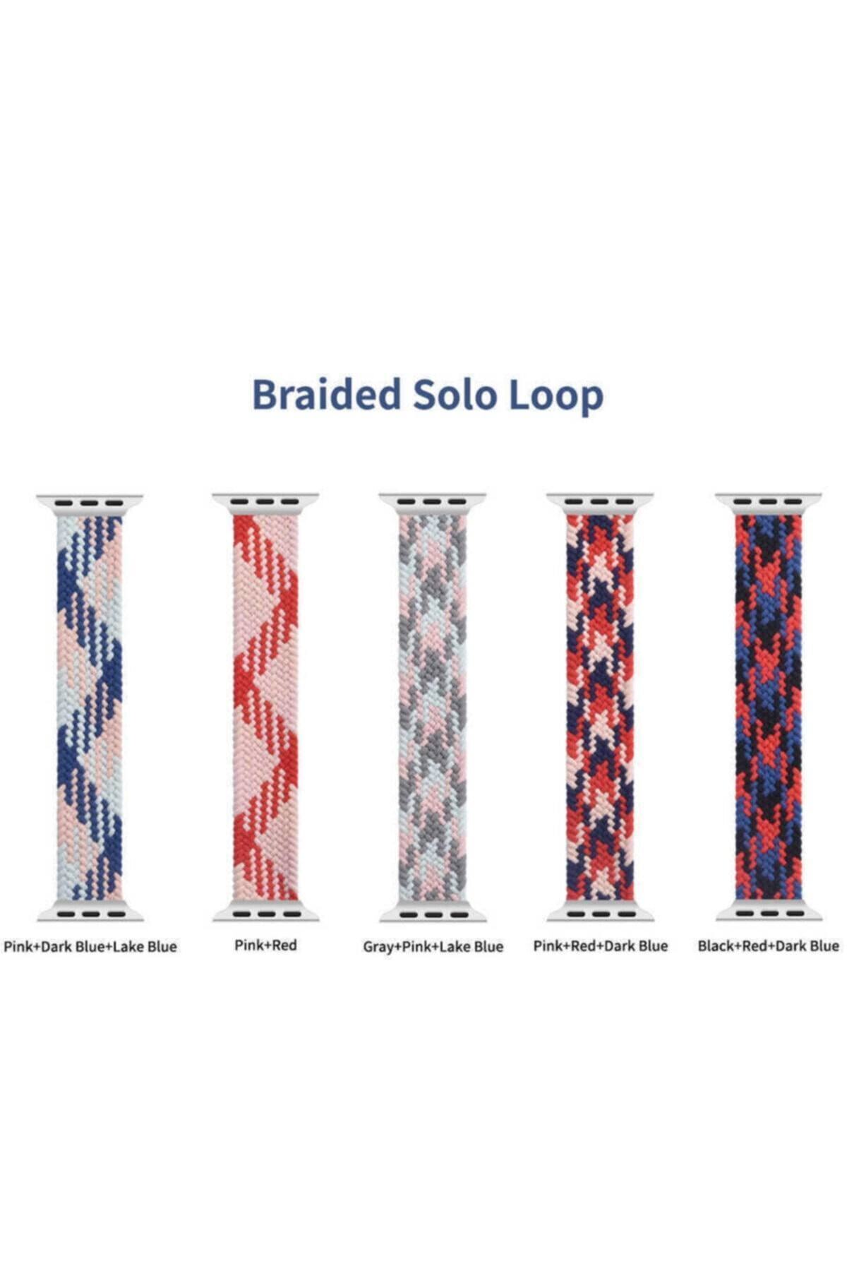 Apple Watch 40mm Hasır Örgü Tasarımlı Small Kordon - Mavi-pembe