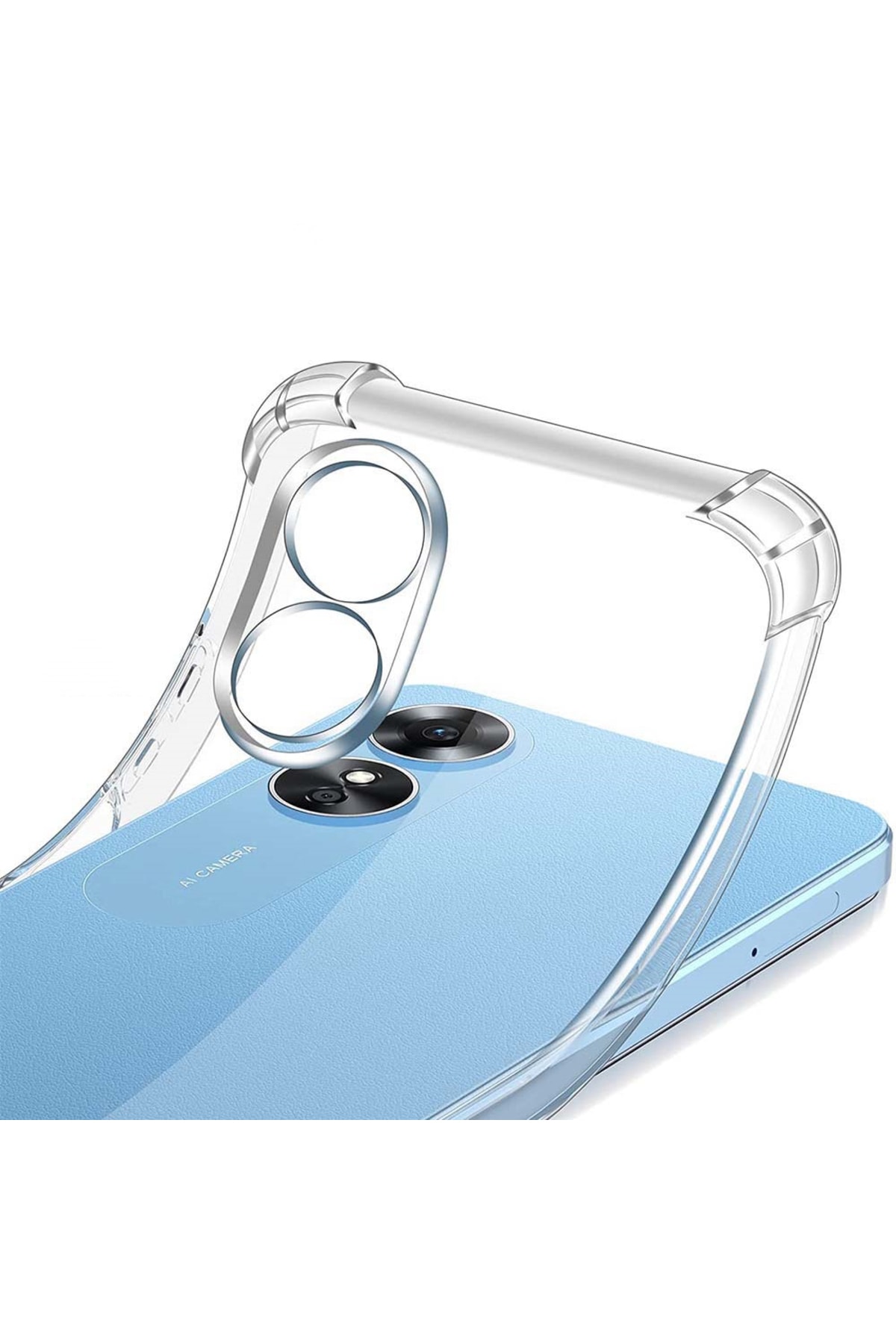 Oppo A17 Kapak Kamera Korumalı Airbag Antishock Köşe Korumalı Şeffaf Silikon Kılıf